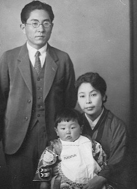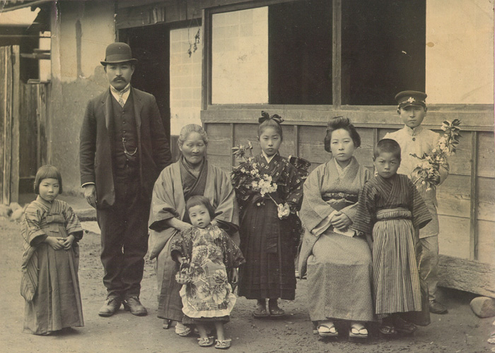 帽子をかぶっているのは祖父(昇平)と父(正通)です。盛装しているのは、父が脇町中学に進学 した記念に隣の川島村から